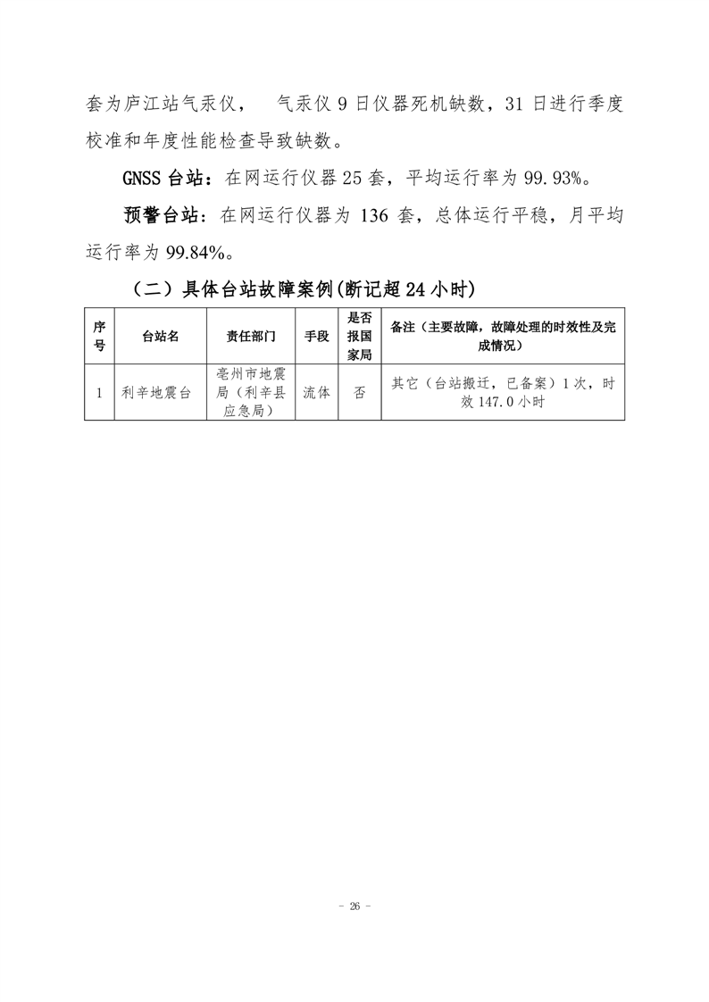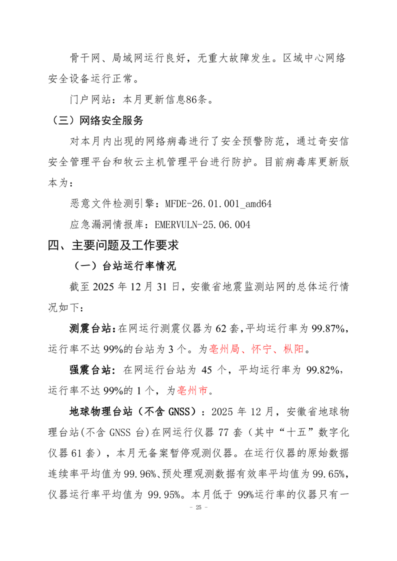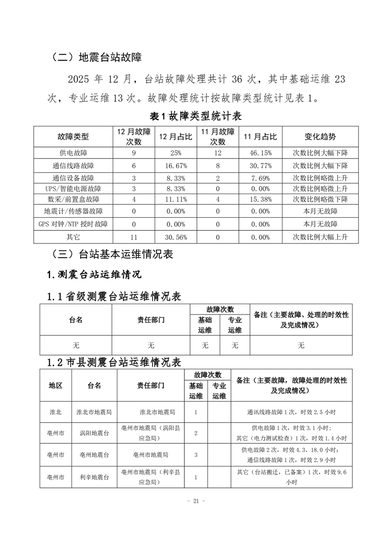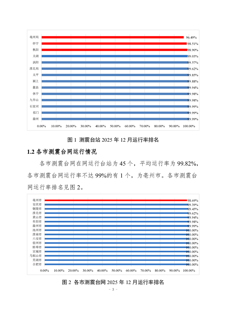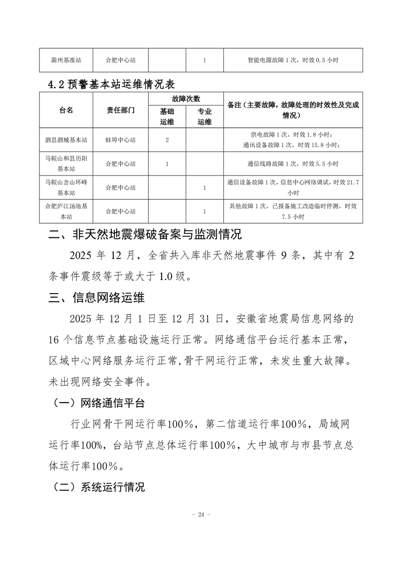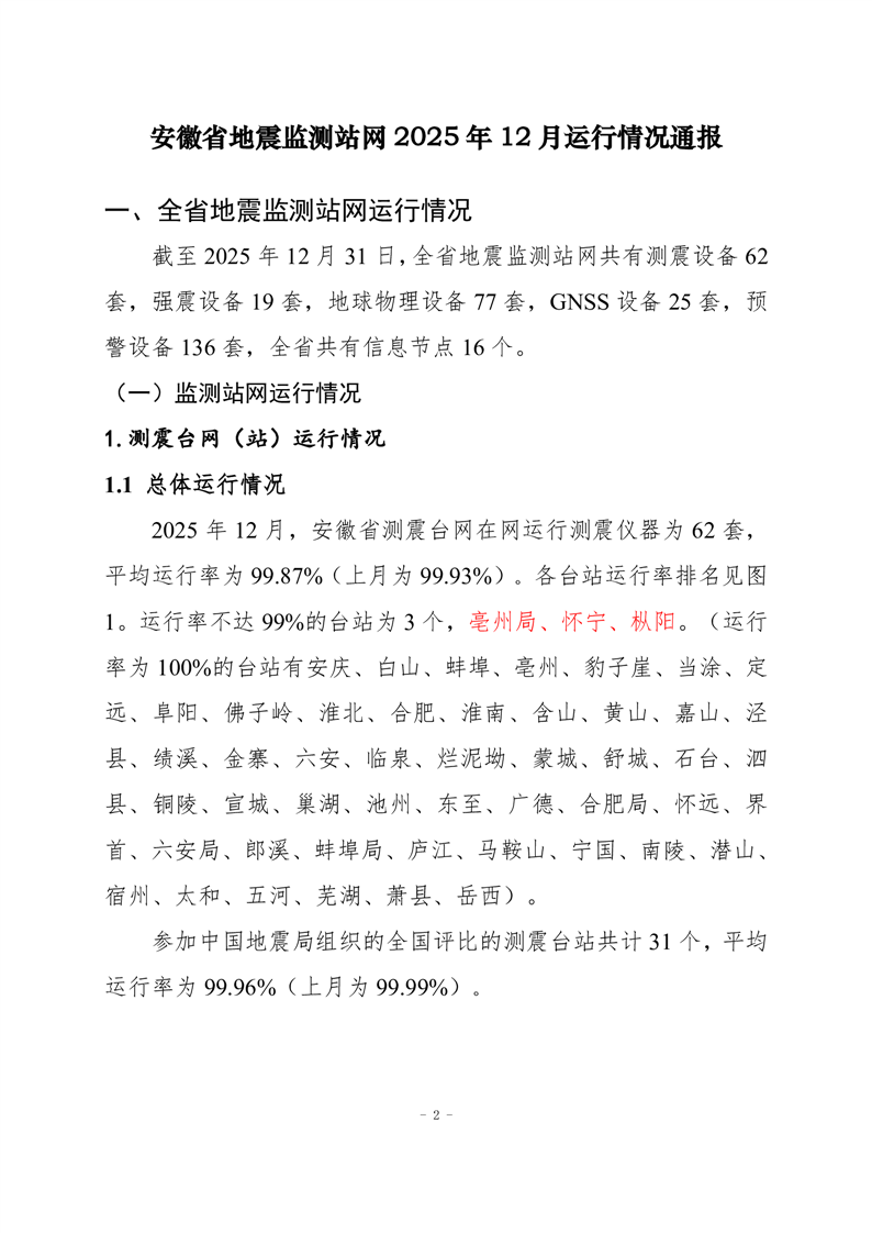 安徽省地震监测站网运行情况通报(2025年12月)