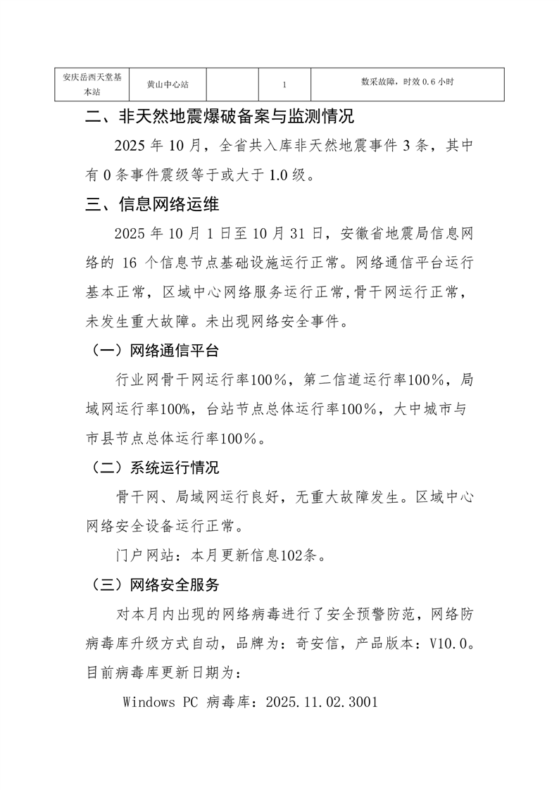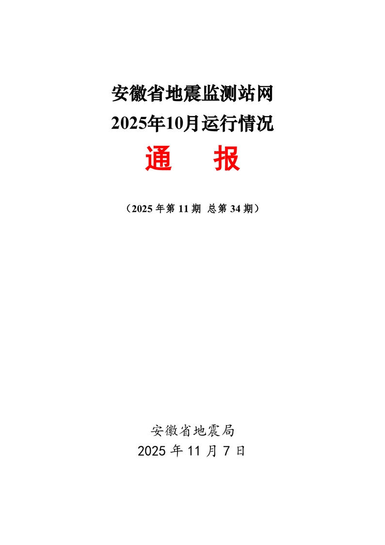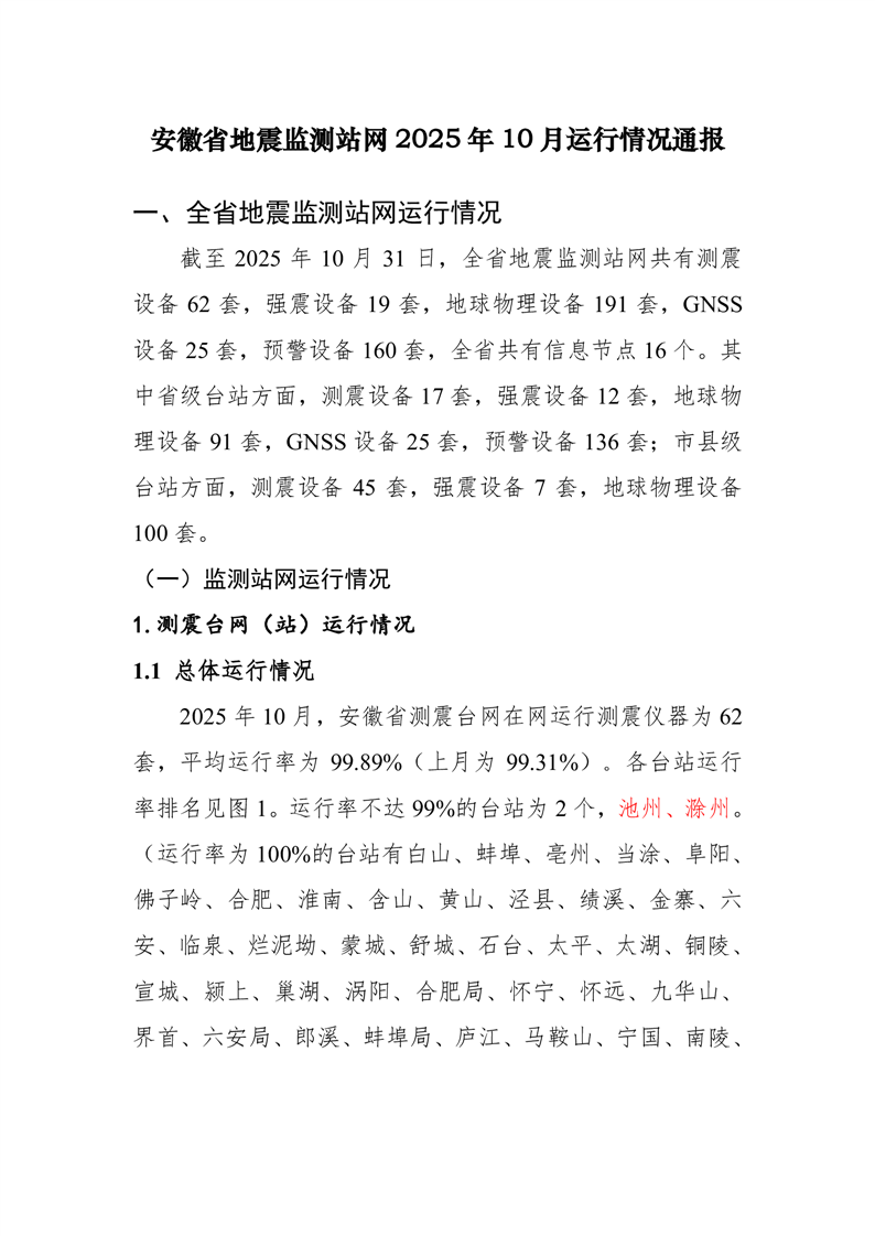 安徽省地震监测站网运行情况通报(2025年10月)