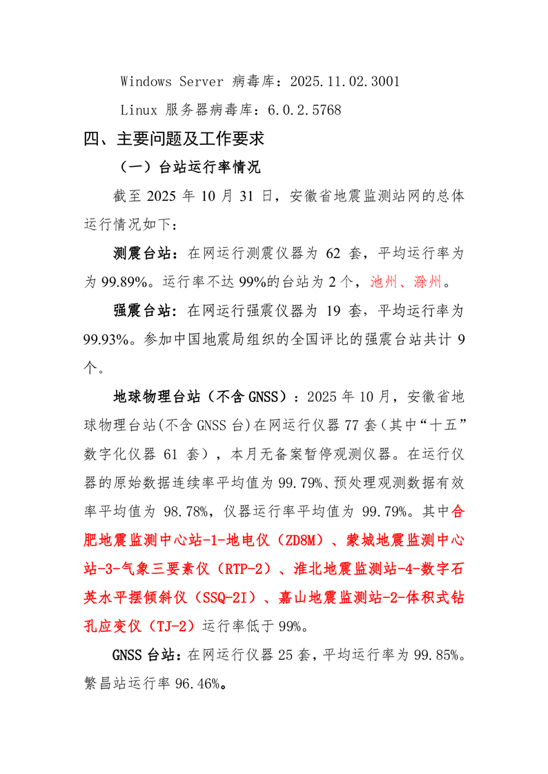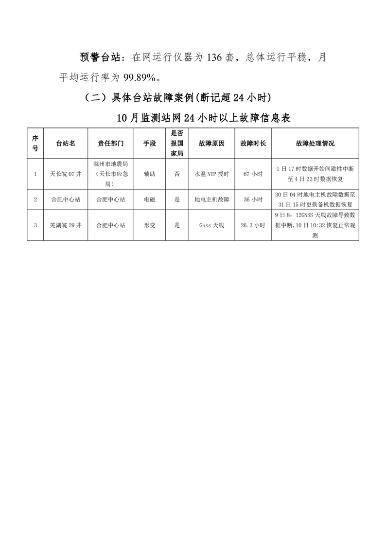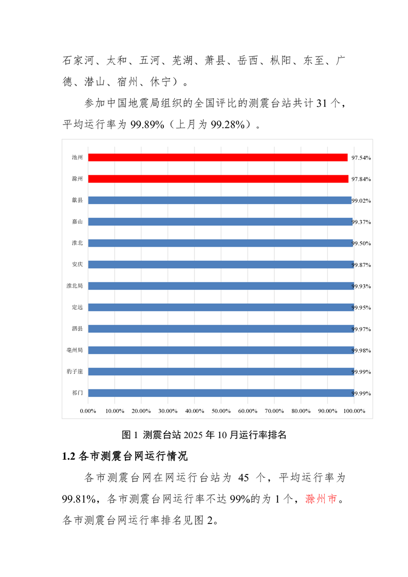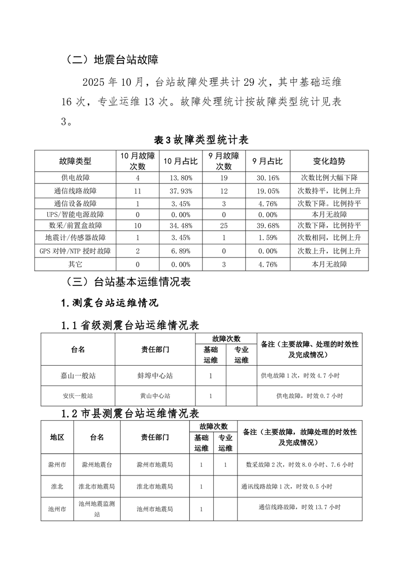 安徽省地震监测站网运行情况通报(2025年10月)